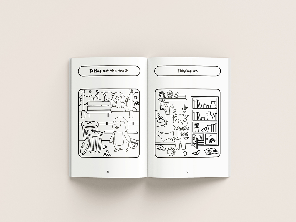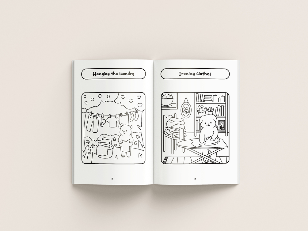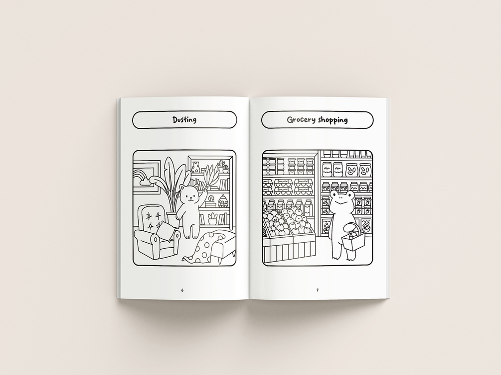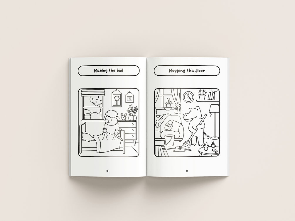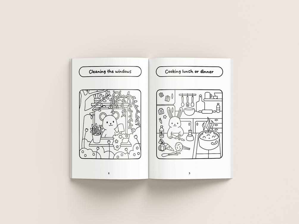 This is a little colouring book I made with lots of love. It's 14 pages of animals doing their little chores.
